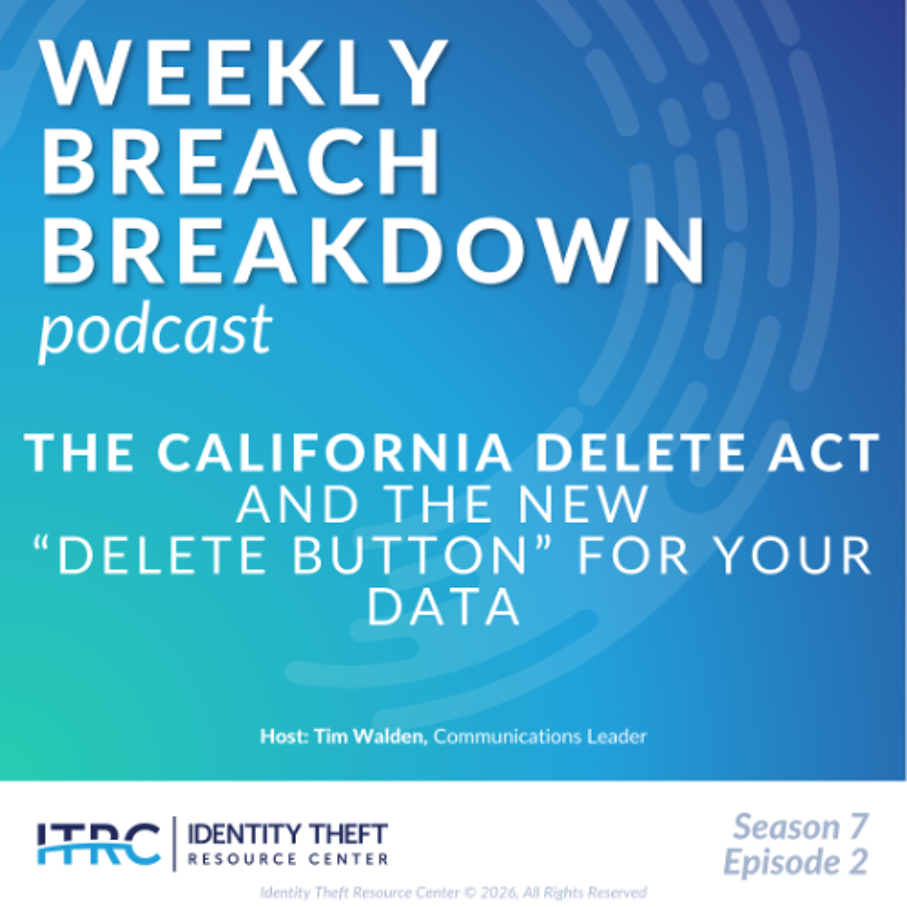 Welcome to the Identity Theft Resource Center’s (ITRC) Weekly Breach Breakdown for January 16, 2026. I’m Tim Walden. Thanks to Sentilink for supporting the ITRC and this podcast. Each week, we look at the most recent events and trends related to data security and privacy. This week, we’re talking about something privacy advocates have dreamed of for years — a delete button for your personal data.